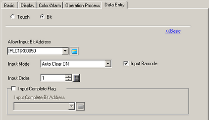 Click the [Data Entry] tab and select [Bit]. Set the [Allow Input Bit Address]. Data input is enabled when this bit address is ON.