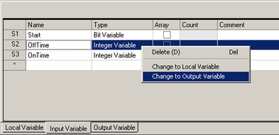 You cannot specify [Timer], [Counter], and [PID] variable settings for input variables and output variables.