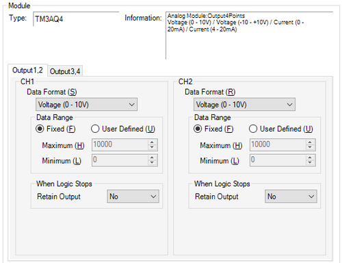 The analog values in the voltage and current output settings are displayed in the range of the data type. The value on the display unit is the output value multiplied by 1000.