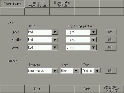 Check to see if the EZ tower light lights properly. Select the lighting pattern and lighting color for the [Upper], [Middle], and [Lower] lights.