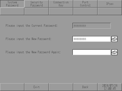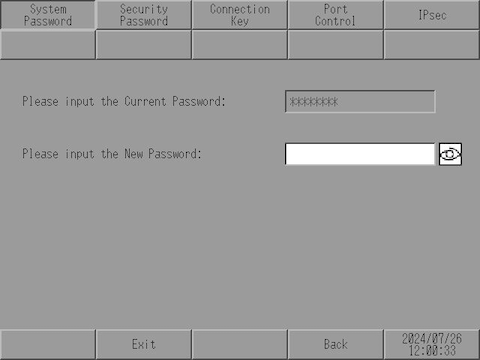 The password setting is used when changing to the Initialize Memory or offline mode screens.