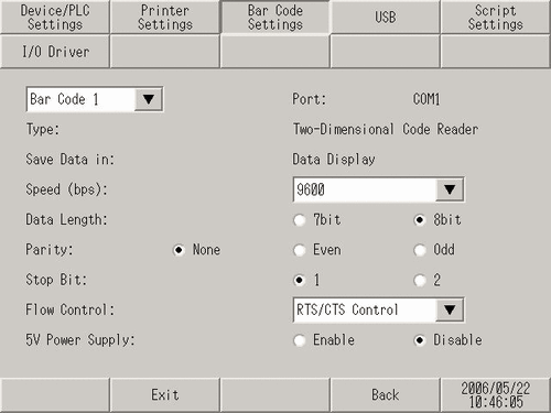 Select the communication control system which monitors and prevents overflow of transmission data. Select [None], [ER (DTR/CTS) control], or [RTS/CTS control].