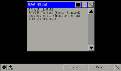 The error window appears. In the window, you can check the error message and date when the error occurred.