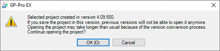 If you attempt to open a project file from a previous version, the following warning message appears.