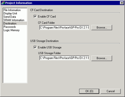 Select whether or not to use a CF card/SD card in projects.