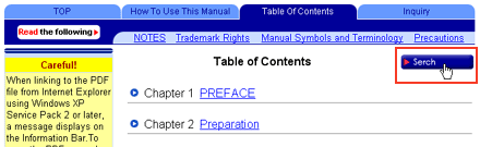 Search is conducted using the Search feature of Adobe Acrobat. You need Adobe Reader version 6.0 or higher to search the entire Reference Manual that is consists of multiple PDFs.