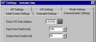 Confirm [Direct I/O Start Address], [Input Area Size], and [Output Area Size] in GP Settings.