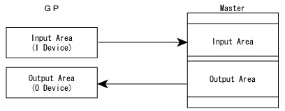 | With GP PRO/PB3, Input Area of the master is described as Output Area of GP, and Output Area of the master is described as Input Area of GP. |