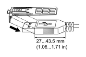 1.71 in) length of the USB connector.
