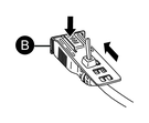 - While pressing the grip on the clip, insert the cable from step 3 all the way into the USB host interface. Make sure that the clip tab is secured to the USB cable attached to this product.