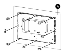 - 설치 파스너를 상단, 하단, 좌우의 브래킷 개방부에 삽입하고 드라이버로 나사를 조금씩 조이되 대각선으로 위치한 나사들을 번갈아 조이십시오.
