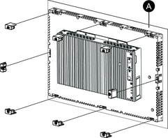 当您正在安装或取出固定螺丝时将产品稳定固定在面板开孔内。