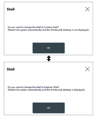 • 当切换到自定义Shell时,无法使用Explorer Shell 中显示的功能(如 Windows® 桌面、开始菜单、任务栏)。