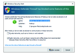 The first time System Monitor is started, the Microsoft Edge settings screen will appear. The Windows Security Alert screen will also appear. Select Allow access if you allow other computers on the network to use the dashboard; select Cancel if you do not.