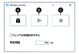 更新間隔に時間を入力すると、PLAY を押した後にウィンドウサイズ・位置を変更した場合、入力した時間が経過した後、元のサイズ・位置に戻ります。ウィンドウの移動を許可する チェックボックスにチェックを入れると、PLAY を押した後に時間が経過してもウィンドウの位置は戻りませんが、サイズは元のサイズに戻ります。