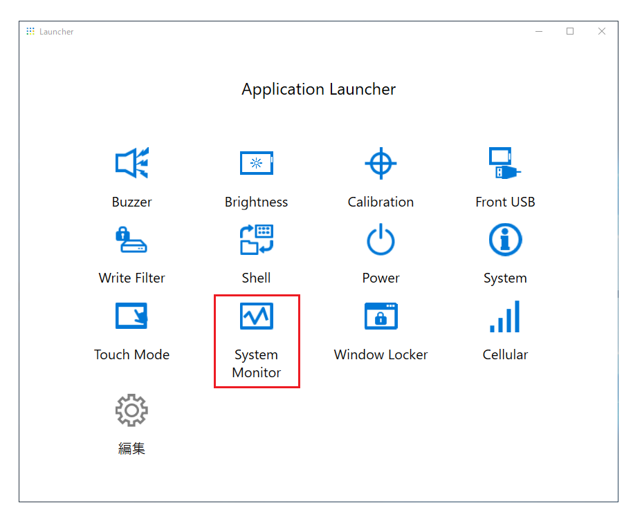 本製品には、弊社独自のシステムモニターである Node-RED で作成したダッシュボードが搭載されています。ランチャーSystem Monitor アイコンからシステムモニターを起動できます。