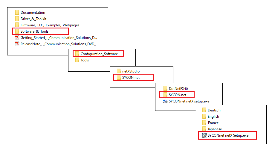 3. Next, install SYCON.net. Select Software_&_Tools > Configuration_Software > SYCON.net > SYCON.net, and run SYCONnet netX Setup. Install following the on-screen instructions.