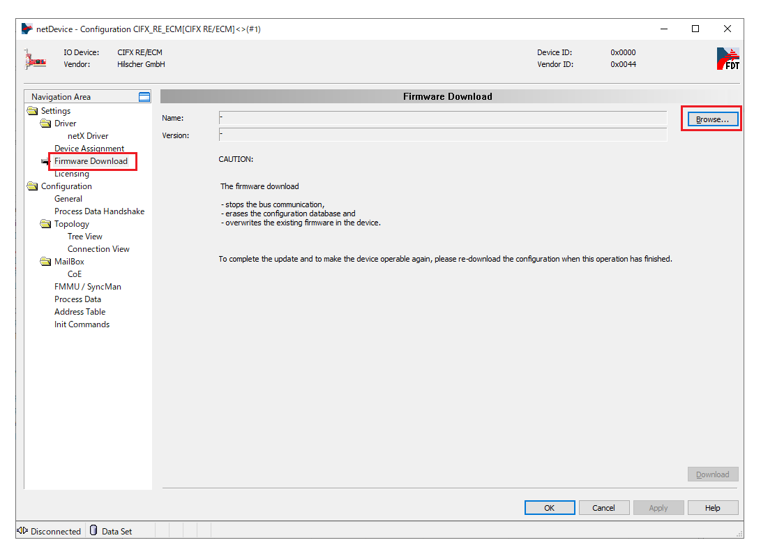10. Select Firmware Download and click Browse.