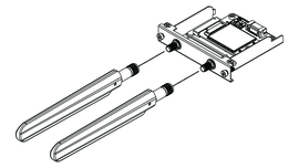 - 如下图所示,将天线电缆连接器牢固插入卡上的连接器。从接口上方看,将左侧电缆连接器插入连接器1,将右侧电缆连接器插入连接器2。