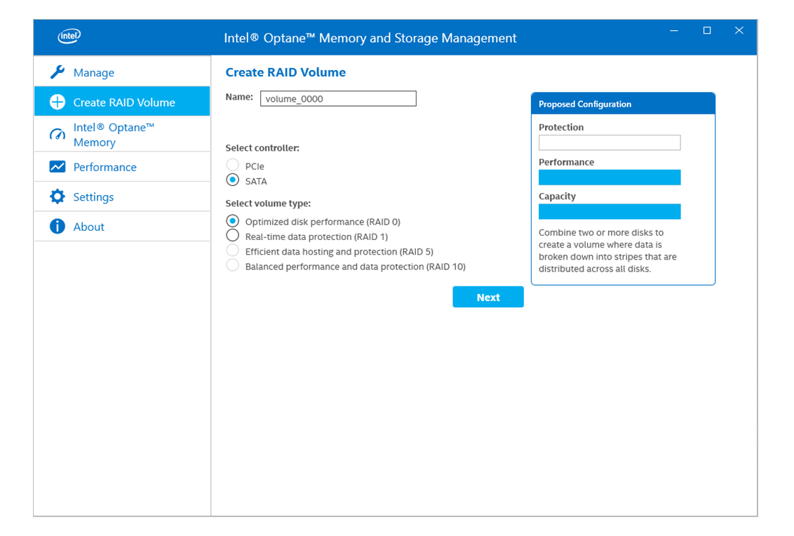 For information on working with Intel® OptaneTM Memory and Storage Management, refer to the application online help.