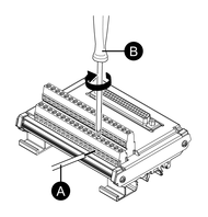 Dans les environnements où ce bornier subira des vibrations et des chocs extrêmes, fixez ce bornierau rail DIN avec des attaches compatibles, si nécessaire.