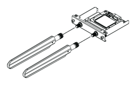 - Comme illustré ci-dessous, branchez le câble de l'antenne dans le connecteur sur la carte mini PCIe 4G. À partir du dessus de l'interface, branchez le connecteur de câble au côté gauche au connecteur 1 et le connecteur de câble au côté droit au connecteur 2.