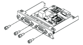 - Stecken Sie den RS-422-Schnittstellenstecker in die Kassette und ziehen Sie die Schrauben fest.