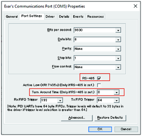 5. Aktivieren Sie das Kontrollkästchen zu RS-485.