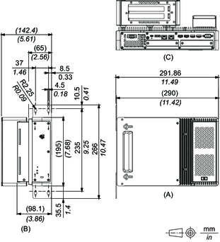 Dimensioni con adattatore per montaggio a libro (laterale)