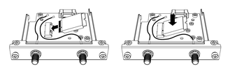- Come mostrato di seguito, collegare saldamente il connettore del cavo dell'antenna al connettore della scheda. Guardando da sopra l'interfaccia, inserire il connettore del cavo sul lato sinistro al connettore 1 e il connettore del cavo sul lato destro al connettore 2.