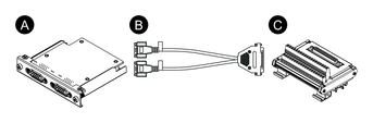 このデジタル I/O 用インターフェイスを使用することで外部 I/O を制御することができます。インターフェイスユニットを本製品に装着し、付属の 16DI/8DO DIN レールターミナルユニット接続用ケーブルを使用します。ターミナルユニットは DIN レールに取り付けるように設計されています。