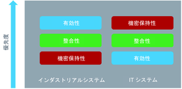 産業用システムと一般的な IT システムでは、以下の図に示すとおり、重要事項の優先順位も異なります。