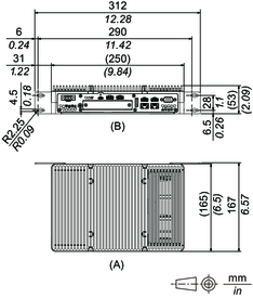 Dimensiones con el adaptador de montaje vertical (Parte superior)