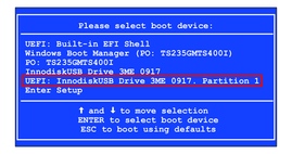 - Seleccione el nombre del medio de recuperación.NOTA: El nombre del USB de recuperación opcional comienza con «UEFI». (El nombre a continuación es sólo a modo de referencia.)
