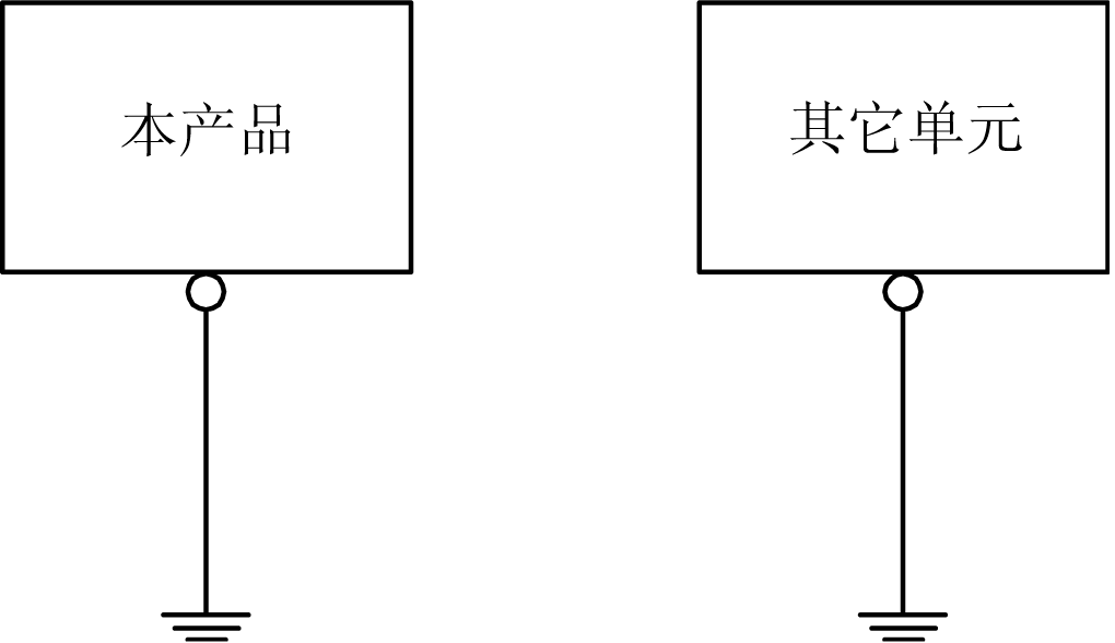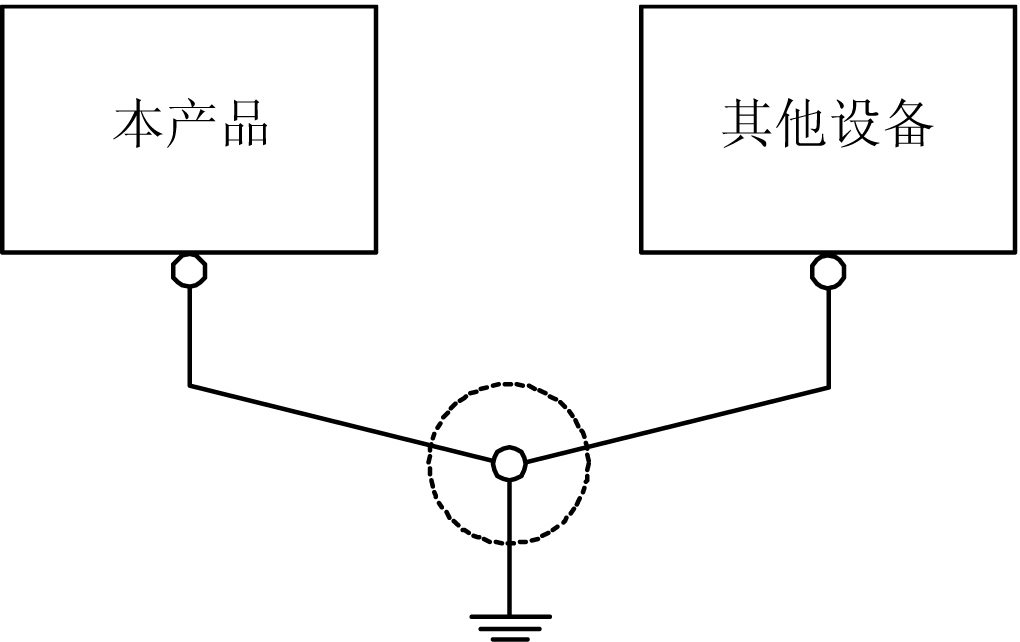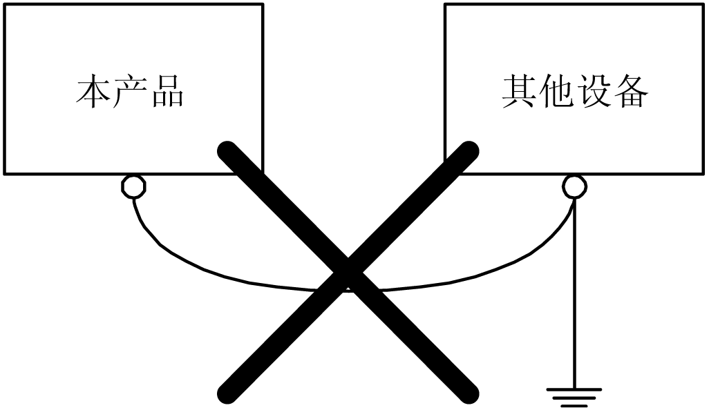 如果设备没有正确接地的话,将引起电磁干扰。电磁干扰有可能导致通讯丢失。如果无法连接到独立接地端,请如下面配置所示使用公共接地端。请勿使用公共接地的任何其它配置。