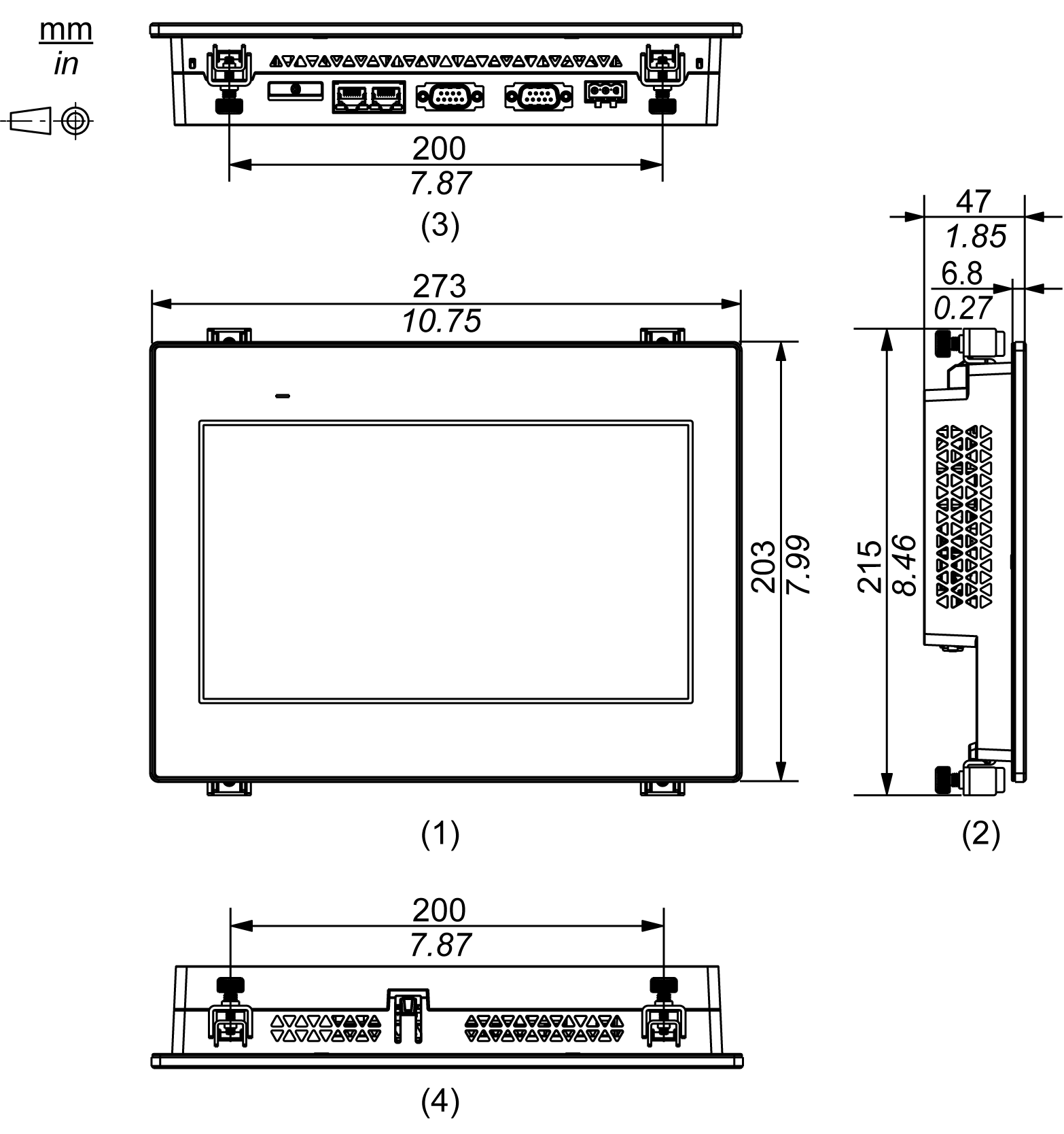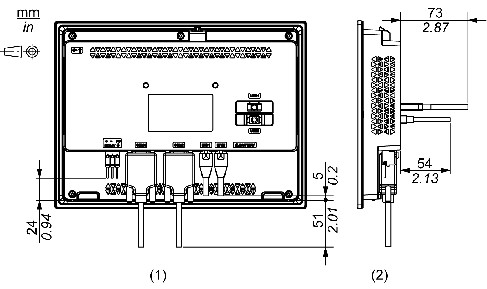 注: 以上所有值都是为允许电缆弯曲而设计。此处给出的尺寸都是典型值,具体尺寸取决于所采用的连接电缆类型。因此,它们仅供参考。