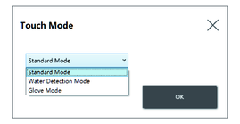 | Water Detection Mode | Mode où les entrées tactiles sont désactivées lorsqu'il y a de liquides, par exemple des gouttes d'eau, sur l'écran. Pratique pour empêcher le mauvais fonctionnement de l'écran tactile en raison qu'il y a des liquides sur l'écran. Après avoir essuyé les liquides ou les autres substances étrangères de l'écran, les entrées tactiles sont activées dans 2 secondes environ. |