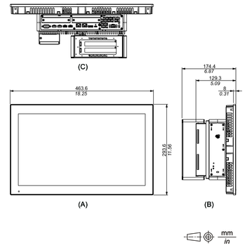 Äußere Abmessungen mit PCI/PCIe-Steckplätzen und Lüftersatz